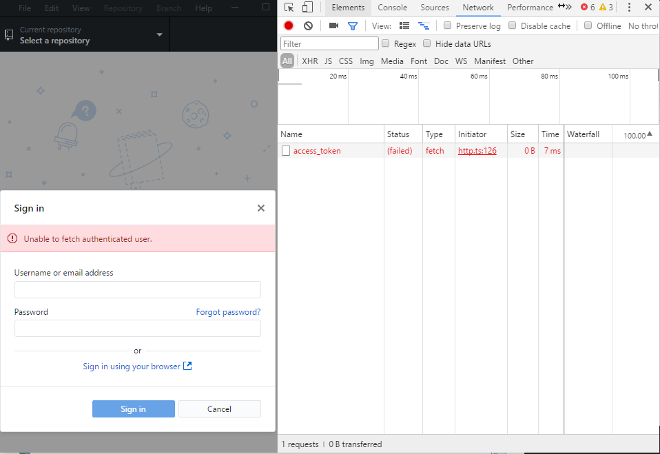 - Note: Signing in by clicking “Sign in using your browser” causes the login dialog box to display a banner that says “Unable to fetch authenticated user.”