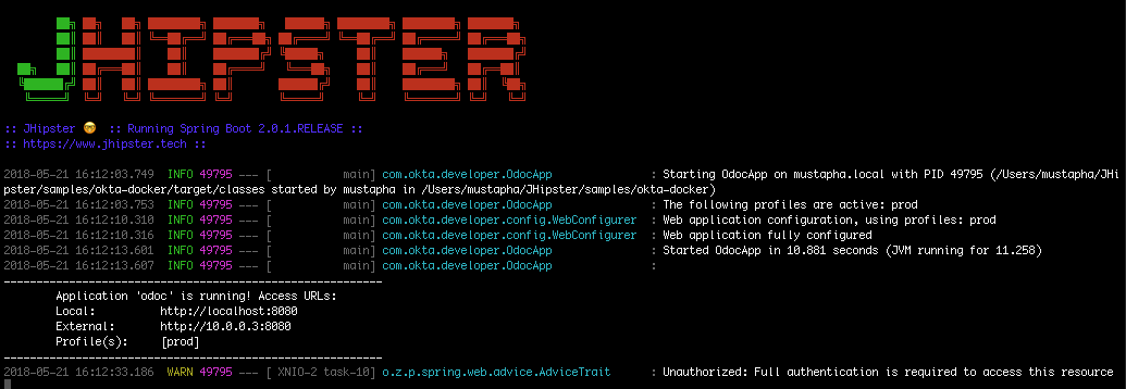 generator-jhipster: Unable to login using oAuth2/OKTA with docker-compose prod package - Error 'User could not be found'