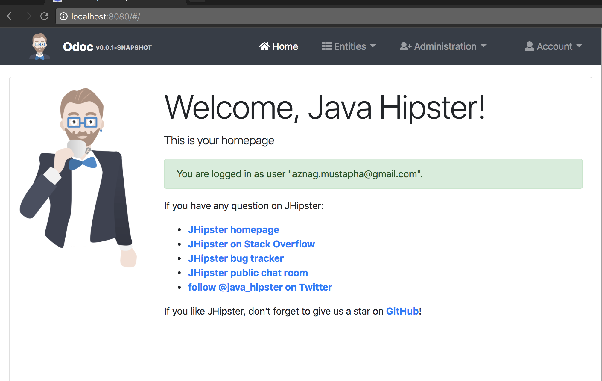 - Change OpenID Connect Settings to use OKTA instead of Keycloak: src/main/docker/app.yml and src/main/resources/application.yml