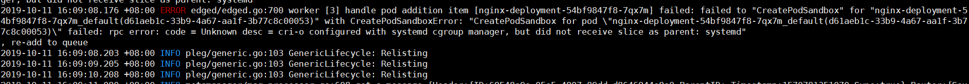 kubeedge: Edge deployment ERROR when edge use crio as runtime and systemd as cgroup-manager