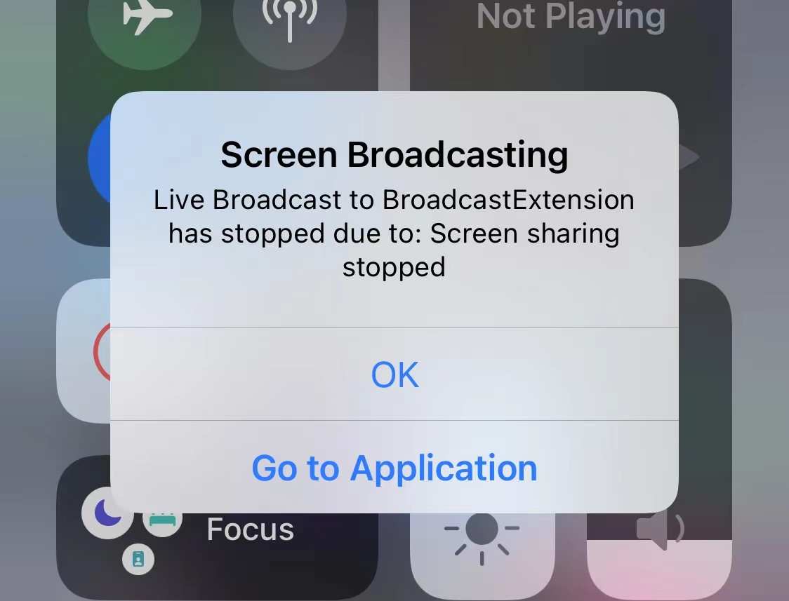 but when the App enters the background, it will stop screen sharing, and the system prompts: Your App has stopped screen sharing for some reason. As shown in the picture: