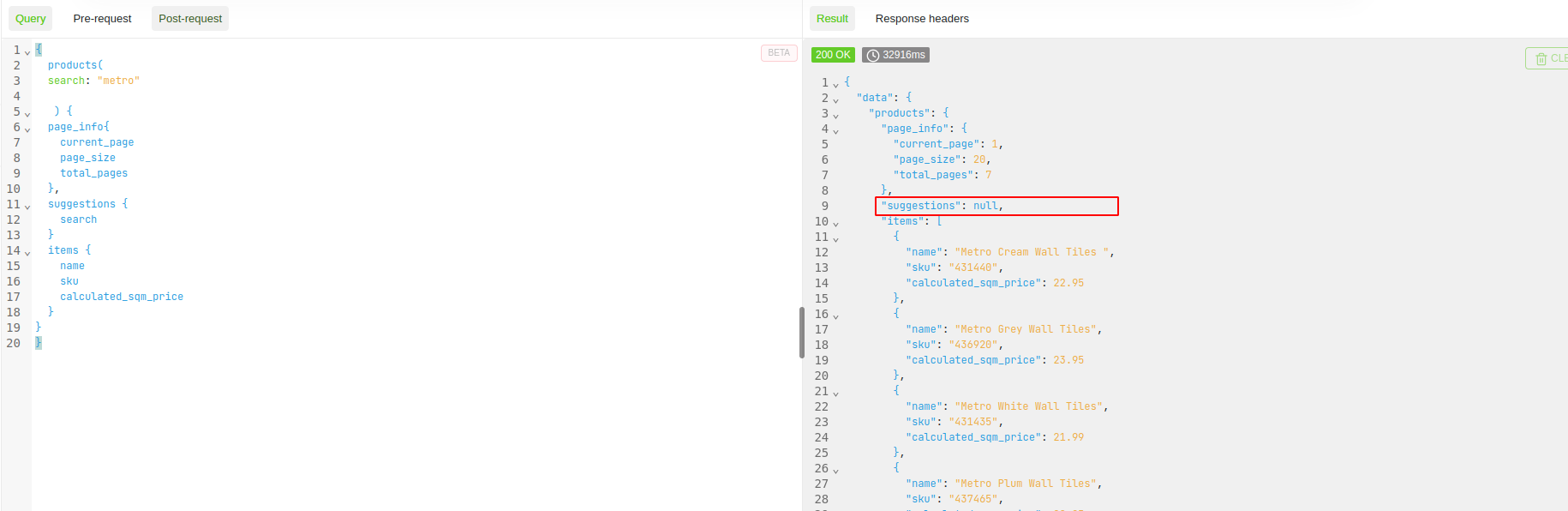 I am using Altair GraphQL chrome extension. Query is