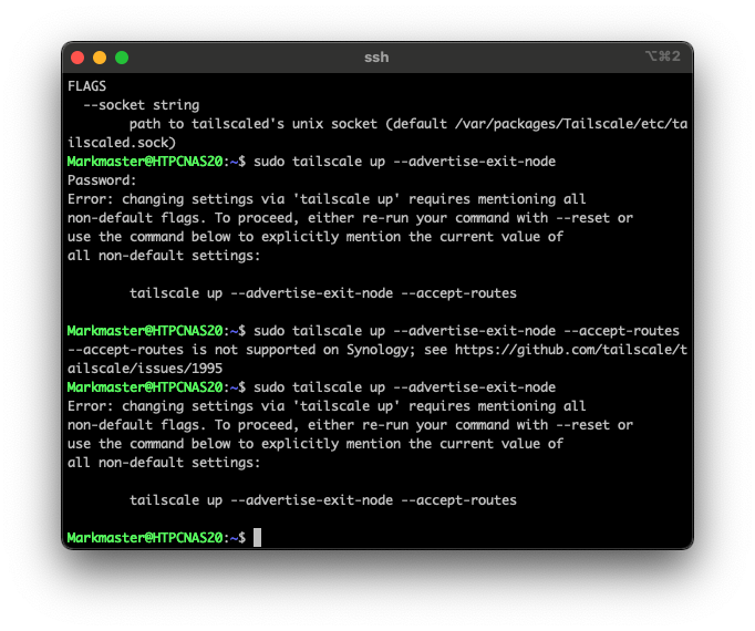 sudo tailscale up --exit-node=<exit-node-name-or-ip>, correct? I’m an amateur at home networking and I’m trying to figure out a way to get PiHole in Docker + Tailscale and an encrypted DNS to play nicely!Tailscale on Synology on DSM7 is sandboxed and unable to configure the machine’s DNS.
